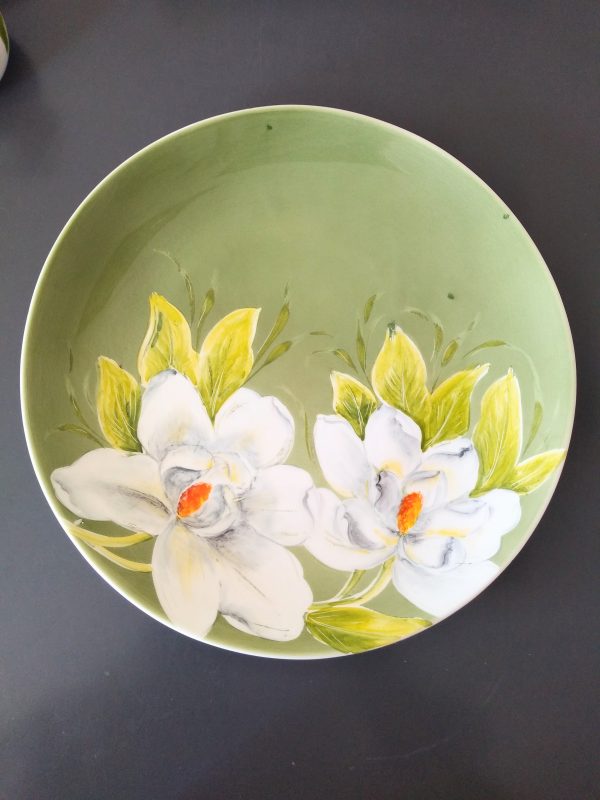 Keramický ručne maľovaný podnos,priemer 29cm,vhodný aj do umývačky riadu.
