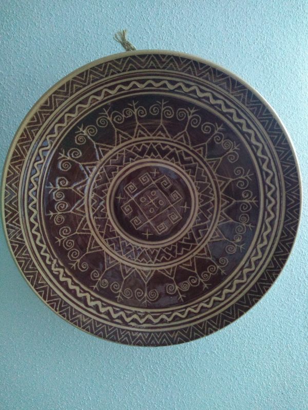 Tanier s priemerom 26cm,zdobený motívom starej Slovanskej keramiky vlnovkovou technikou.
